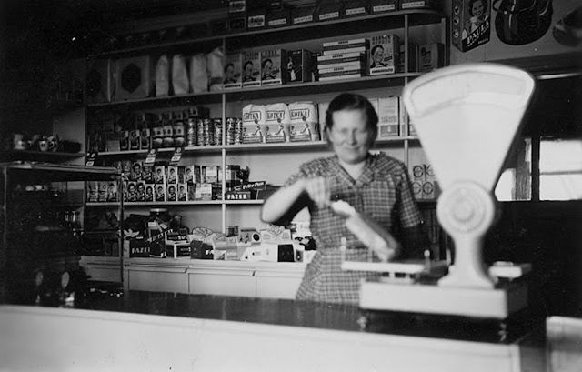 | Onni Mehtonen kaupan tiskin takana vuonna 1954 |